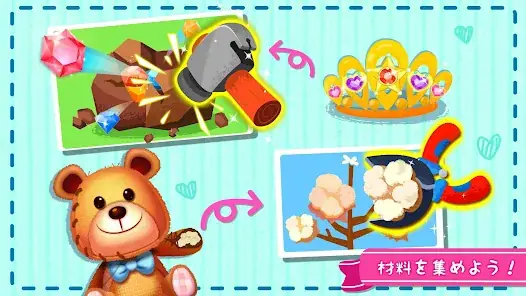 ベビーパンダのキッズDIYは、3~4才の子どもがハンドクラフトを楽しめる内容のゲームです。子どもたちはベビーパンダと一緒に、人形やキャンディー、王冠などのものづくりにチャレンジします。DIYゲームを通して、創造力と芸術性を伸ばします。