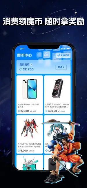【消费送魔币】只要消费,即可获得平台赠送的魔币,魔币可用于兑换任意商品,如热门手办、潮玩玩具、iPhone手机等;